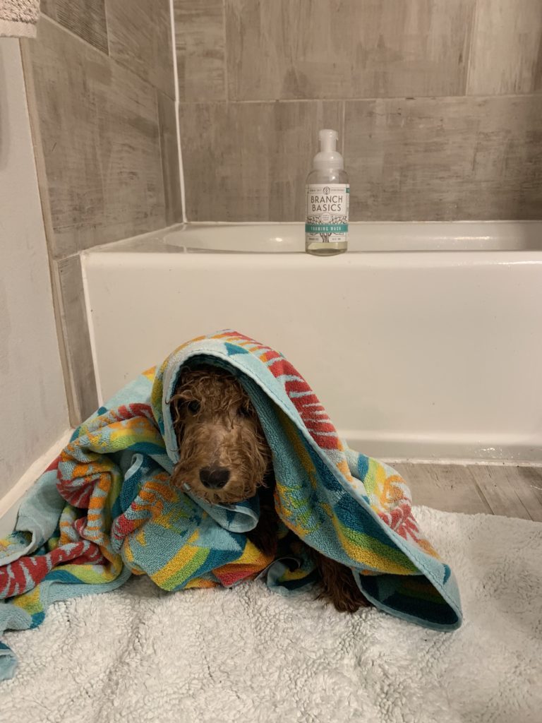 - Arlo loves baths (and jumping in the shower!) but I find I can get him the cleanest in the bath. If you have a larger dog or one that hates being in the bath, a hose outside will work the same way.